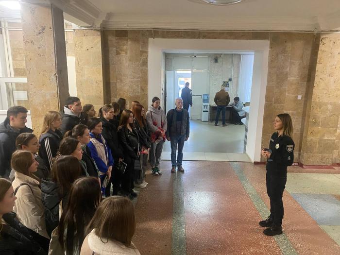 Особливий інтерес викликала екскурсія музеєм Національної поліції Хмельниччини. Студенти з цікавістю слухали розповідь старшої інспекторки сектору прав людини Альбіни Мельник про історію Кам’янець-Подільської міліції/поліції.