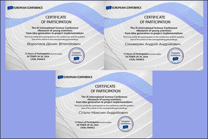 За такою темою відбулася IX Міжнародна науково-практична конференція «Research of young scientists: from idea generation to project implementation» (м. Ліон, Франція), у якій взяли участь курсанти ННІ №4 ХНУВС спеціальності «Кібербезпека» Андрій Синжерян, Максим Сітало, Денис Воропаєв. Під керівництвом професорки кафедри інформаційних систем та технологій Світлани Лучик вони представили свої публікації, присвячені проблемі керування безпекою паролів під час роботи з комп’ютерною технікою та мережами (секція «Технічні науки»). Доповіді курсантів включені до збірника конференції.