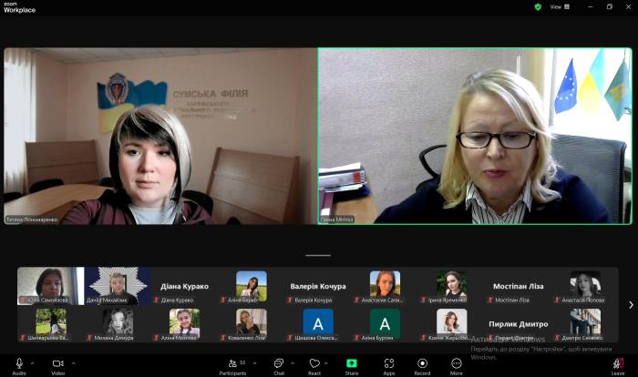 Для здобувачів освіти Сумської філії ХНУВС провідна фахівчиня групи виховної та соціально-гуманітарної роботи Ганна Мітітєл провела виховний, інформаційно-просвітницький захід щодо протидії булінгу за участі інспектора сектору ювенальної превенції Сумського РУП ГУНП у Сумській області Данііла Михайлика та кураторок груп Юлії Самойлової та Тетяни Пономаренко.