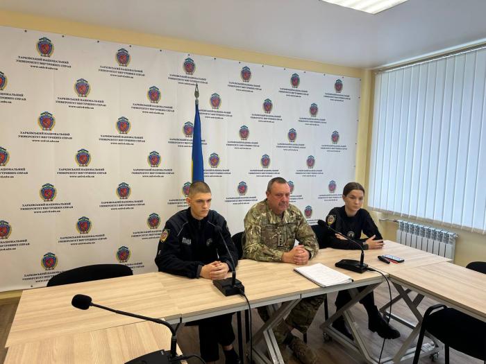 Ольга Мельничук розповіла старшокласникам про навчально-наукові інститути та спеціальності, за якими здійснюється підготовка фахівців ступеня вищої освіти бакалавр, Олексій Мєтла – про умови навчання та побуту курсантів університету, роботу наукових, спортивних гуртків тощо.
