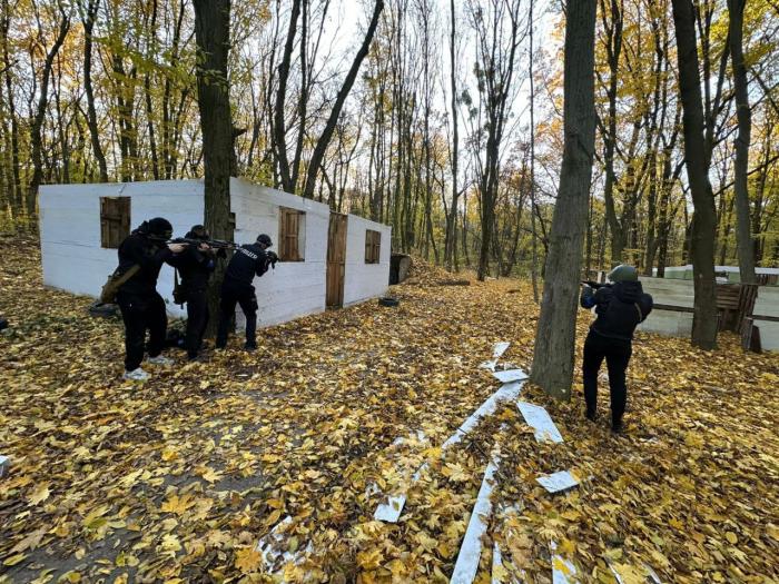 Під час заняття відпрацьовувалися: дії малих оперативних груп під час внутрішнього та зовнішнього огляду будівлі; надання допомоги пораненому в зоні під обстрілом; дії особового складу під час пересування в лісистій місцевості за умови можливого вогневого контакту.