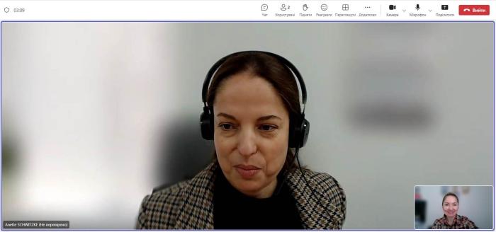 Начальниця відділу міжнародного співробітництва Тетяна Матюшкова взяла участь в онлайн-зустрічі із представниками КМЄС в Україні Анет Швіцке – радницею КМЄС в Україні з гендерних питань та Юлією Петровою – експерткою з тренінгів у сфері прав людини.