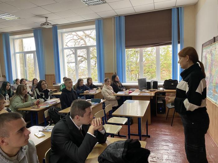 Під час спілкування зі старшокласниками представниці вишу наголосили на важливості правильного вибору майбутньої професії та запросили на навчання до університету.