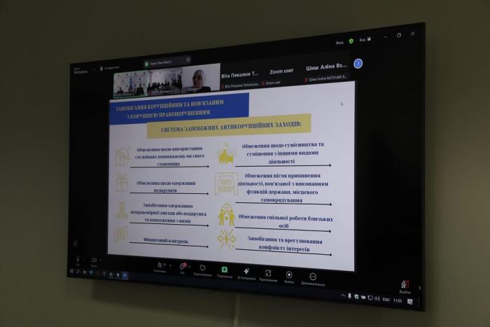 Яна Мазур проаналізувала систему запобіжних антикорупційних заходів, міжнародні стандарти у сфері запобігання і протидії корупції, положення Закону України «Про запобігання корупції», детально розібрала порядок дій у разі спроби надання неправомірної вигоди або забороненого подарунка, конфлікт інтересів та його складові.