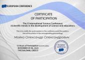 Курсант ННІ №4 ХНУВС Олександр Мойко, який навчається за спеціальністю «Кібербезпека», взяв участь у X Міжнародній науково-практичній конференції «Scientific trends in the development of science and education» м. Салоніки (Греція). Його доповідь була присвячена проблемам кібербезпеки організацій в умовах дії правового режиму воєнного стану в Україні та питанням покращення кібергігієни працівників (секція «Технічні науки»). Матеріали до конференції були підготовлені під керівництвом професорки кафедри інформаційних систем та технологій Світлани Лучик. Результатом виступу став «Збірник матеріалів конференції» та сертифікат.