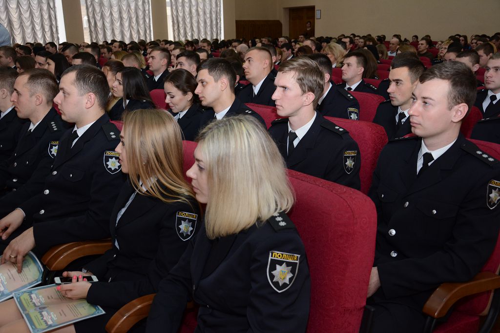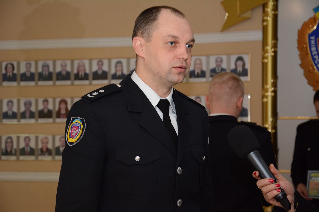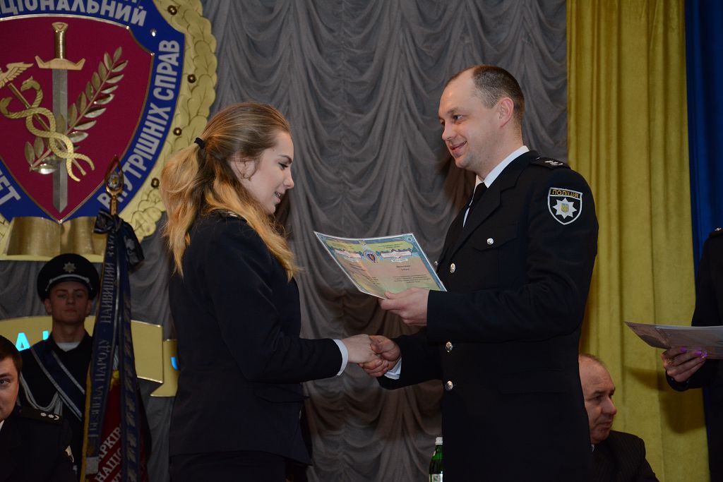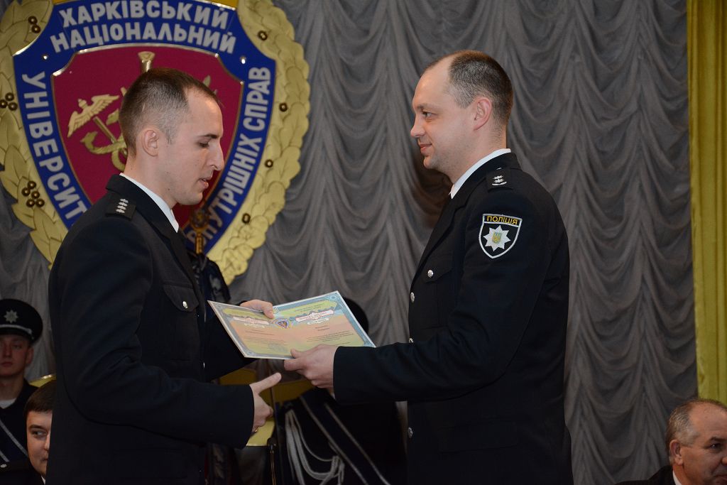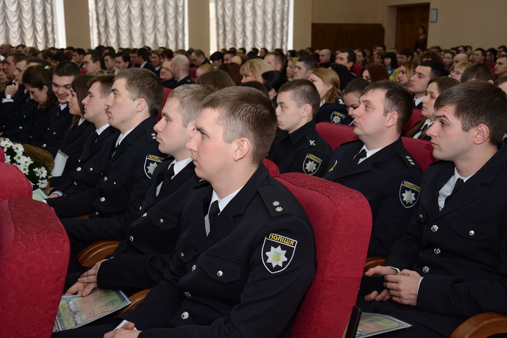 З визначною подією у житті привітав молодь та передав вітання від ректора університету генерала поліції третього рангу Валерія Сокуренка перший проректор підполковник поліції Дмитро Швець. Він зазначив, що юнаки і дівчата обрали непросту службу – боротися зі злочинністю, захищати права і свободи громадян. Вона шляхетна і вкрай необхідна суспільству. «Будьте чесними, гуманними, справедливими, уважними до людей! Завжди пам’ятайте, що людські якості працівника поліції є не менш важливими, ніж професійні! Ваш особистий приклад та компетентність формуватимуть повагу до закону та зміцнюватимуть віру громадян у справедливість», – наголосив Дмитро Володимирович. Він особисто вручив дипломи юнакам і дівчатам, які закінчили університет із відзнакою і зазначив, що у навчальному закладі завжди раді бачити своїх випускників.