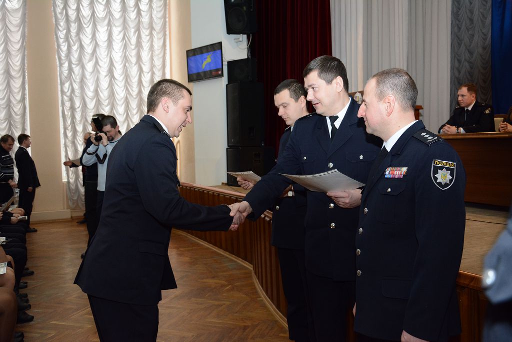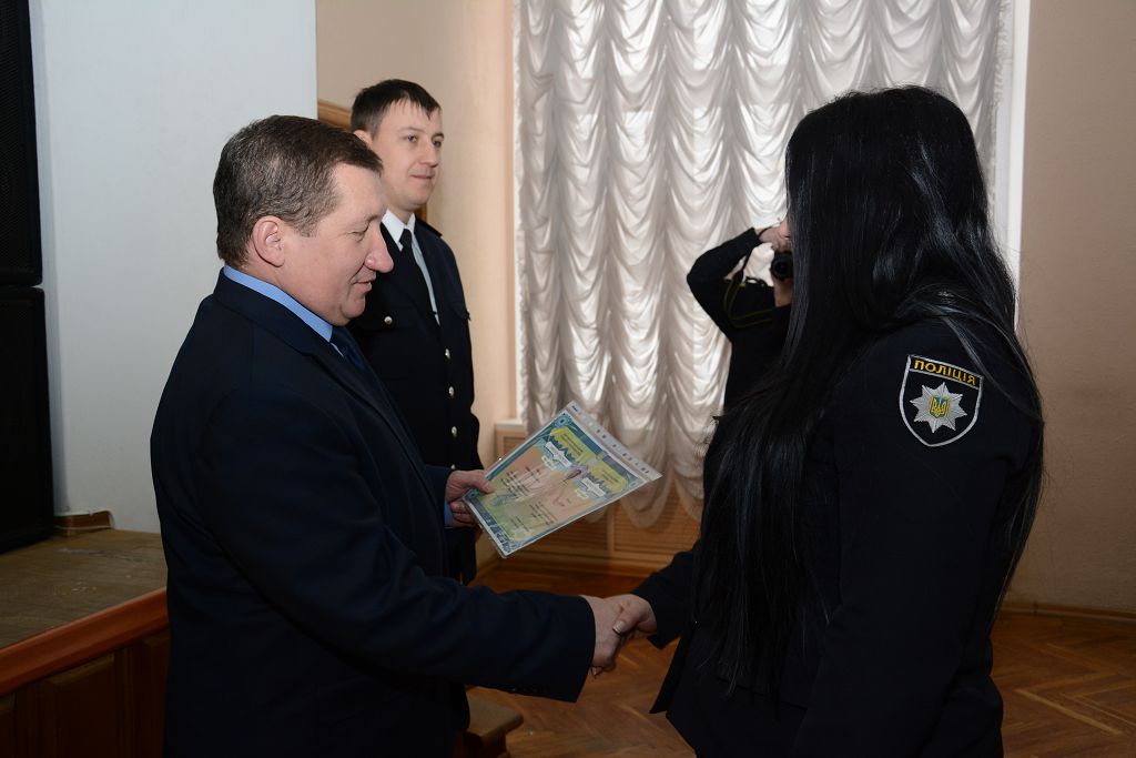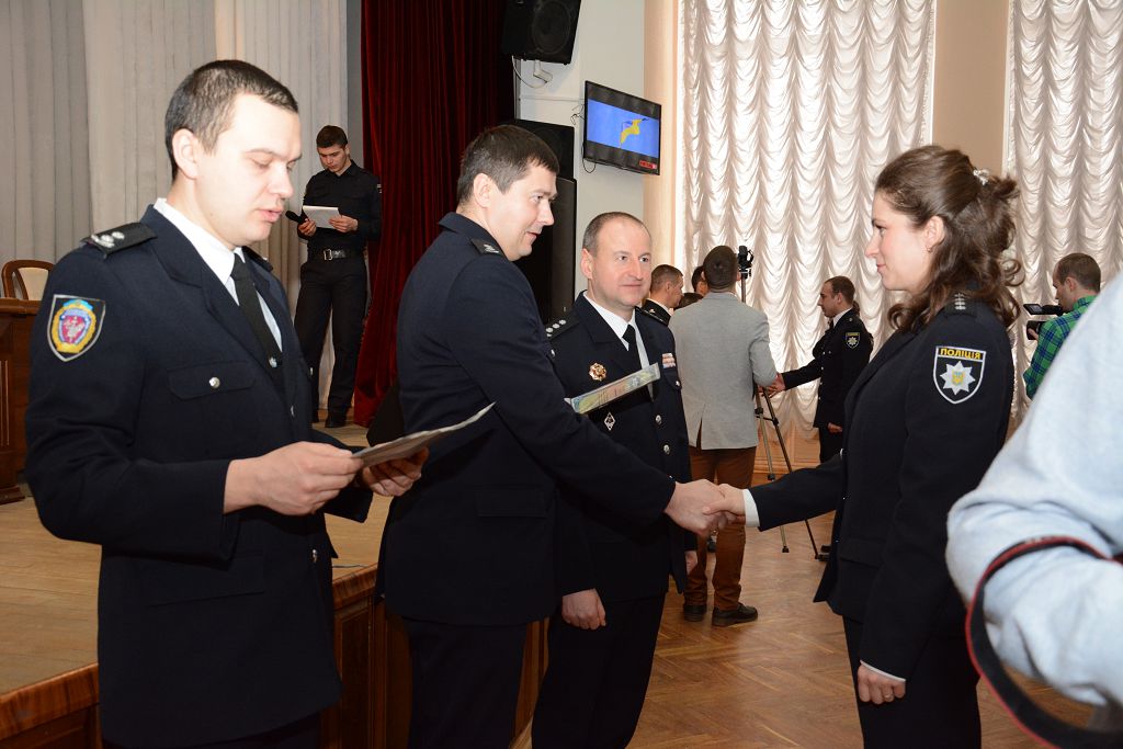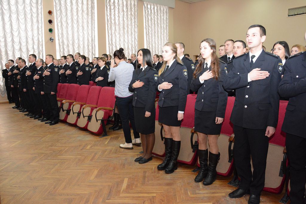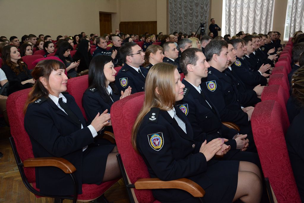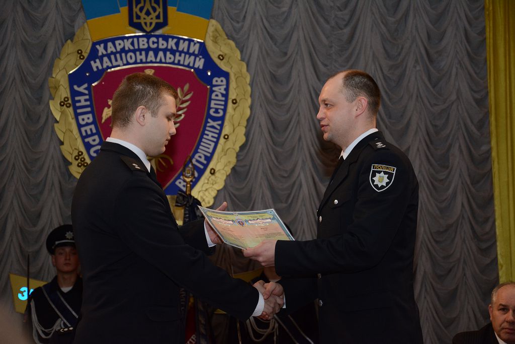 З визначною подією у житті привітав молодь та передав вітання від ректора університету генерала поліції третього рангу Валерія Сокуренка перший проректор підполковник поліції Дмитро Швець. Він зазначив, що юнаки і дівчата обрали непросту службу – боротися зі злочинністю, захищати права і свободи громадян. Вона шляхетна і вкрай необхідна суспільству. «Будьте чесними, гуманними, справедливими, уважними до людей! Завжди пам’ятайте, що людські якості працівника поліції є не менш важливими, ніж професійні! Ваш особистий приклад та компетентність формуватимуть повагу до закону та зміцнюватимуть віру громадян у справедливість», – наголосив Дмитро Володимирович. Він особисто вручив дипломи юнакам і дівчатам, які закінчили університет із відзнакою і зазначив, що у навчальному закладі завжди раді бачити своїх випускників.