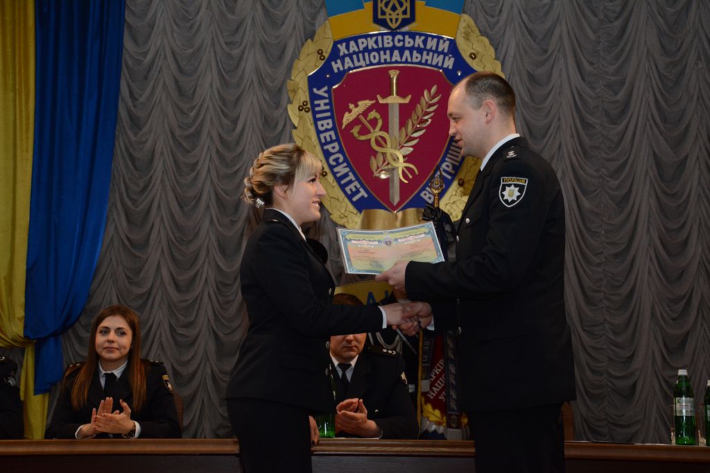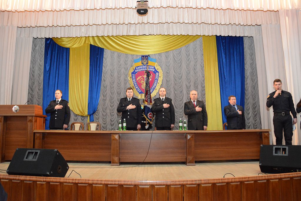 Урочистості з нагоди вручення дипломів слухачам магістратури Харківського національного університету внутрішніх справ розпочалися із вшанування хвилиною мовчання патріотизму, мужності та героїзму тих, хто поклав своє життя за єдність та незалежність України, а також усіх правоохоронців, які загинули під час виконання службових обов’язків.