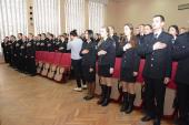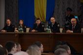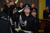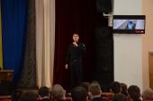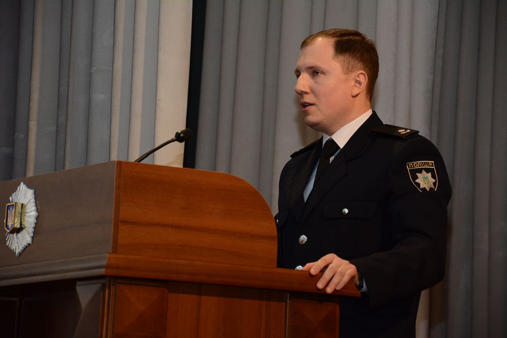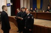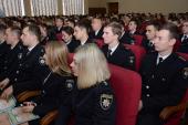 Від імені науково-педагогічного колективу зі словами настанов до юнаків і дівчат звернувся доцент кафедри кримінального права та кримінології факультету № 1 майор поліції Юрій Орлов.