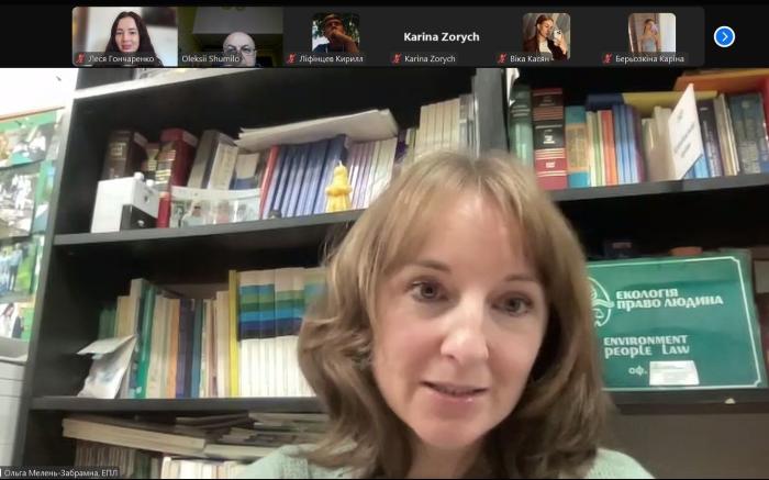 Правозахисниця розповіла про діяльність її правозахисної організації, зупинившись на особливостях захисту окремих екологічних питань. Вона поділилася успішними кейсами справ, що захищала її організація, наголосивши, що проблема місця екологічних прав людини у системі конституційних прав і свобод людини і громадянина в Україні сьогодні є надзвичайно важливою та актуальною.