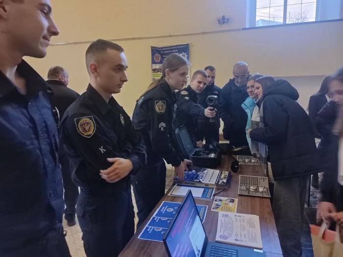 Зі спеціальностями, за якими готують фахівців для підрозділів Національної поліції України, присутніх ознайомили директор ННІ №1 (слідства) Віталій Романюк і директор ННІ №4 (кіберполіції) Микола Марчук. Вони розповіли юнакам і дівчатам, які незабаром обиратимуть свій професійний життєвий шлях, що здобувачі освіти Харківського національного університету внутрішніх справ мають усі необхідні умови для навчання, вони – активні учасники й переможці різних конкурсів, відзначені грамотами, подяками за гарне навчання та активну наукову роботу. Серед молоді вишу багато спортсменів, які захищають честь не лише свого закладу освіти, а й України на всеукраїнських та міжнародних змаганнях різного рівня. Старшокласники дізналися про відомих у державі випускників, якими пишається університет. Батькам школярів і працівникам закладів загальної середньої освіти також розповіли, що у ХНУВС працює Автошкола для осіб з інвалідністю, в якій учасники бойових дій, що отримали інвалідність, мають можливість пройти курс навчання на категорію «В» або підвищити рівень безпечного керування автомобілем.