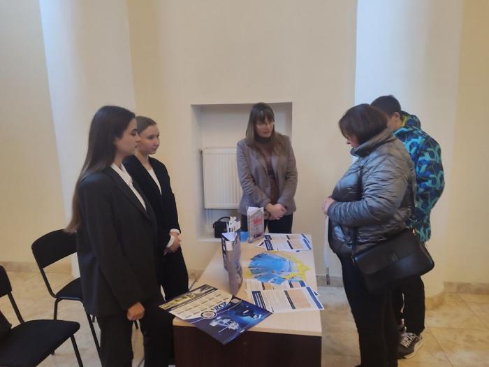У фойє Міського будинку культури було розміщено стенди інститутів вишу, де містилася інформація про напрями підготовки та спеціальності, матеріально-технічне забезпечення освітнього процесу та багато іншого. Представники інститутів відповіли на численні запитання майбутніх вступників, усі охочі навчатися у ХНУВС отримали інформаційні листівки та іншу інформаційно-іміджеву продукцію.