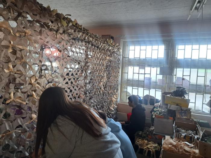 Однією з волонтерських активностей стала допомога Благодійному фонду «Ми Тут – Північний Форпост» у плетінні маскувальних сіток, які допомагають нашим бійцям залишатися непомітними для ворога.