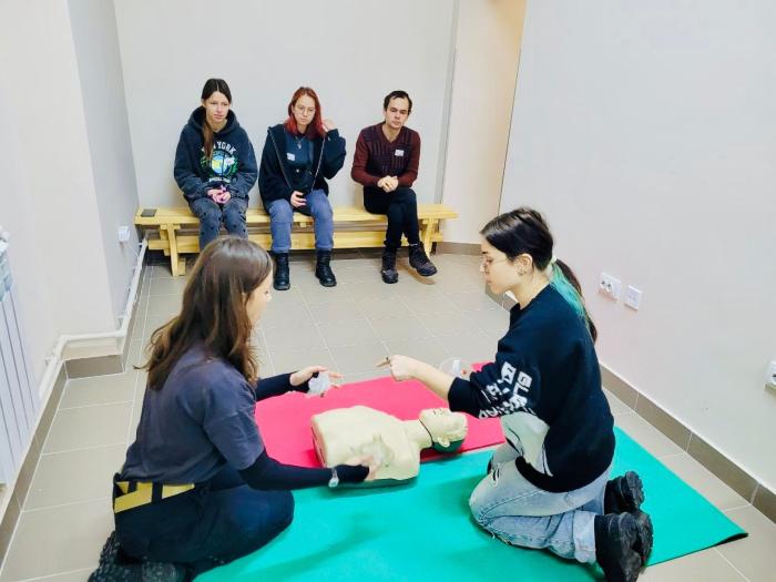 У безпечному приміщенні одного із університетів міста Харкова заняття для студентів організували провідна наукова співробітниця науково-дослідної лабораторії соціально-психологічного супроводу та реабілітації працівників МВС навчально-наукового інституту №3 Євгенія Гладкова разом із командою волонтерів БФ «Долоньки миру». Під час тренінгу команда професійних інструкторів Благодійної організації «AID 46» навчила молодь необхідним алгоритмам поведінки та надання першої домедичної допомоги. Учасники практично відпрацювали набуті навички та отримали сертифікати.