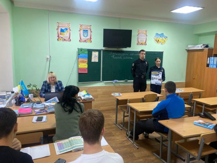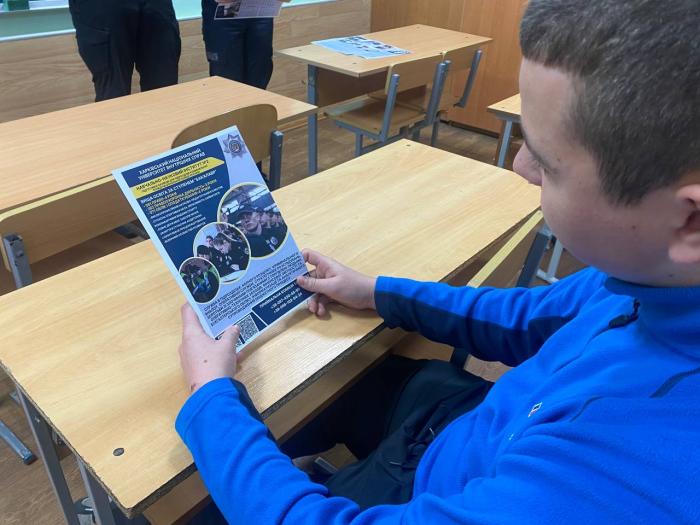 Профорієнтаційну зустріч курсантів Харківського національного університету внутрішніх справ із випускниками Агрономічного ліцею Агрономічної територіальної громади організували працівники кафедри спеціальної фізичної підготовки. Курсанти ННІ №2 Максим Кучерявий та Анастасія Шумович ознайомили учнів одинадцятих класів з особливостями вступної кампанії 2025 року, умовами вступу до Харківського поліцейського університету, розповіли про навчально-наукові інститути та спеціальності. Вони навели покроковий алгоритм дій абітурієнтів під час вступу до закладів вищої освіти системи МВС, які готують поліцейських. Особливу увагу курсанти приділили порядку подачі анкети вступника на сайті https://osvita.np.gov.ua/ для реєстрації кандидатів на навчання за державним замовленням. Випускники ліцею також дізналися про особливості та переваги навчання в Харківському поліцейському виші, про порядок оформлення особових справ.