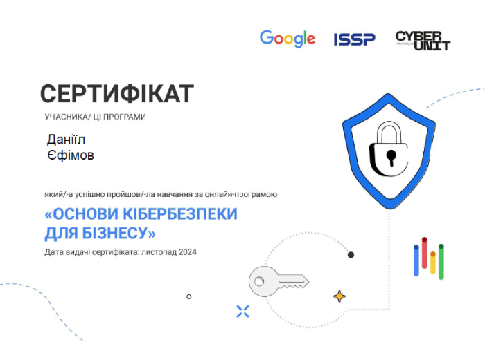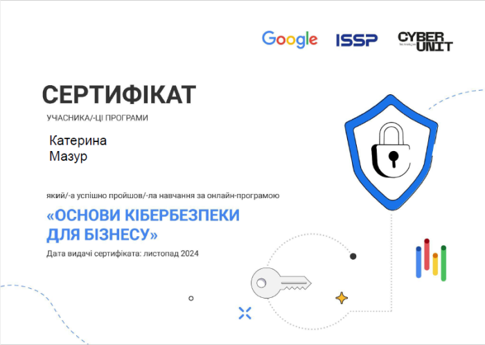 У межах ініціативи «Безпечніше з Google» курс з основ кібербезпеки для бізнесу пройшли представники кафедри кібербезпеки та DATA-технологій – завідувач кафедри Юрій Гнусов, доцентка Інна Хавіна, старший викладач Михайло Цуранов, а також здобувачі вищої освіти спеціальності «Кібербезпека та захист інформації»: Дарина Гарт, Сергій Кочубей, Іван Заховаєв, Яна Гончарова, Даніїл Нежид, Катерина Мазур, Даніїл Єфімов і Владислав Кравченко. Учасники отримали структуровані знання з кібергігієни, протидії кібератакам, аналізу ризиків, опанували практичні інструменти, взяли участь у практичному семінарі з використання штучного інтелекту Google Gemini для кібербезпеки.