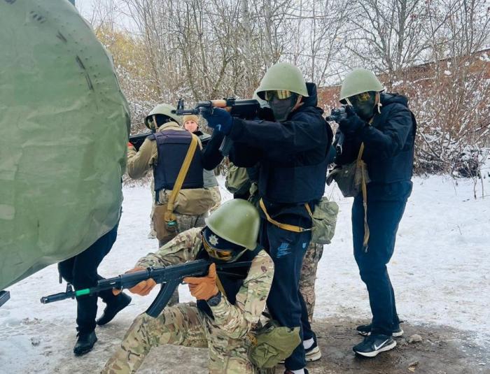 Заняття проводилось з використанням страйкбольного обладнання та піротехнічних засобів.