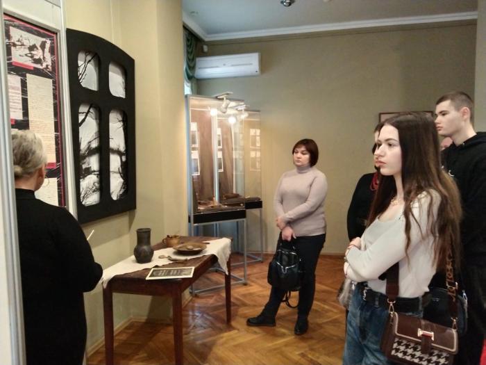 Здобувачі освіти Сумської філії ХНУВС разом із кураторками Надією Демиденко, Юлією Самойловою, фахівчинею відділу виховної та соціально-гуманітарної роботи Анною Мітітєл відвідали тематичну експозицію у Сумському обласному краєзнавчому музеї, присвячену пам'яті жертв Голодомору 1932–1933 років. Вони переглянули копії унікальних архівних документів: листів, щоденників очевидців тих страшних подій. Особливе враження на присутніх справили шматки чорного хліба, випечені в ті роки з різних трав, які допомагали виживати, бо весь хліб, навіть посівний, був конфіскований.