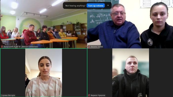 Професор кафедри протидії кіберзлочинності ННІ №4 Василь Лучик і викладач цієї ж кафедри, учасник бойових дій Вадим Мальцев разом із курсантами 3 курсу ННІ №4 Валерією Грубою, Кирилом Чукаловим і студенткою 1 курсу ННІ №5 Вікторією Сєровою ознайомили ліцеїстів 11 класу із спеціальностями та освітніми програмами, за якими здійснюється підготовка фахівців у Харківському національному університеті внутрішніх справ, особливостями вступу до університету. Більш детально ліцеїстам розповіли про спеціальності «Кібербезпека» та «Інформаційні системи і технології», про престижність та затребуваність фахівців цих професій на ринку праці.