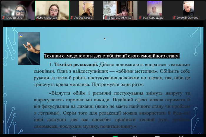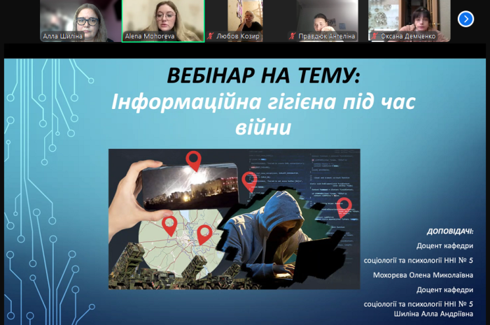Доцентки кафедри соціології та психології ННІ №5 Алла Шиліна та Олена Мохорєва ознайомили школярів Комунального закладу «Харківський ліцей №114 Харківської міської ради» з поняттями «інформаційна гігієна», «інформаційне поле» та «інформаційно-психологічні операції», обговорили важливість профілактичних заходів щодо запобігання розповсюдженню фейкових новин, необхідності моніторингу інформаційної стрічки лише від офіційних джерел та органів місцевого самоврядування. Школярі брали активну участь в обговоренні, ставили запитання, на які отримали вичерпні відповіді від фахівців університету.