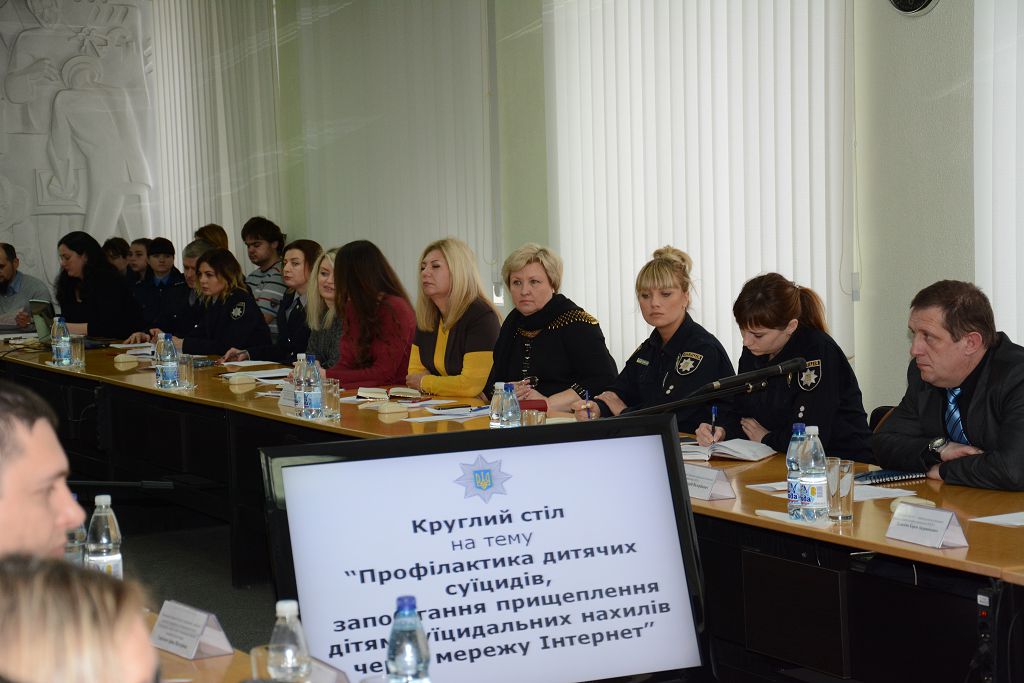 У Харківському національному університеті внутрішніх справ відбувся круглий стіл «Профілактика дитячих суїцидів, запобігання прищеплення дітям суїцидальних нахилів через мережу Інтернет». У заході взяли участь працівники, курсанти та студенти ХНУВС, представники Управління превентивної діяльності ГУНП в Харківській області, Центру практичної психології, соціальної роботи та здорового способу життя Комунального вищого навчального закладу «Харківська академія неперервної освіти», Харківського національного медичного університету, Департаменту науки і освіти Харківської обласної державної адміністрації, а також Харківського обласного центру соціальних служб для сім’ї, дітей та молоді ХОДА, громадської організації «Благовіст 2013», Міської батьківської ради при Департаменті освіти Харківської міської ради, дитячих будинків, директори шкіл.