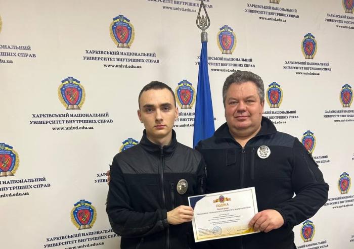 Подяку від Вченої ради Харківського національного університету внутрішніх справ за сумлінне навчання, віддану службу та з нагоди 30-річчя університету отримав курсант Костянтин Ротань.