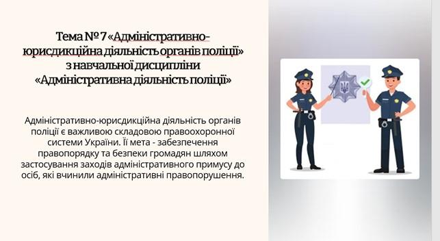 Дільничний офіцер поліції Сумського районного управління поліції ГУНП у Сумській області Тетяна Веремієнко спільно з викладачкою кафедри спеціальних поліцейських дисциплін та базової загальновійськової підготовки Сумської філії ХНУВС Марією Новик провели заняття для здобувачів вищої освіти 2 курсу спеціальності «Правоохоронна діяльність» на тему: «Адміністративно-юрисдикційна діяльність поліції». Учасники обговорили особливості проваджень у справах про адміністративні правопорушення, підвідомчі поліції, а також порядок ведення єдиного обліку заяв і повідомлень про скоєні кримінальні правопорушення й інші події.