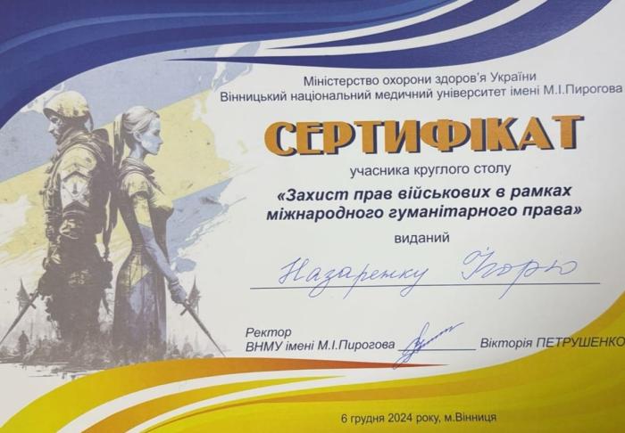 У роботі круглого столу, проведеного до Дня Збройних Сил України, взяв участь директор інституту післядипломної освіти та заочного навчання ХНУВС, кандидат юридичних наук Ігор Назаренко. Його виступ був присвячений питанням з проблем дотримання міжнародного гуманітарного права щодо військовослужбовців.