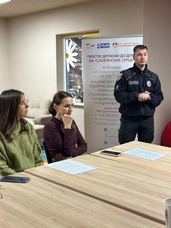 Мета проведення заняття – підвищення обізнаності батьків щодо різних форм насилля (фізичного, психологічного, економічного, сексуального) та навчання методам його попередження. Викладачі разом із представниками ювенальної превенції відділу поліції №1 Вінницького районного управління поліції Михайлом Гончаром та Катериною Бзовою поділилися з батьками практичними рекомендаціями, які сприятимуть захисту дітей, підтримці їхнього емоційного стану та своєчасному реагуванню на ознаки насилля.