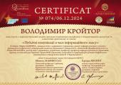 Професор кафедри цивільного права та процесу Володимир Кройтор взяв участь у короткостроковій онлайн-програмі підвищення кваліфікації за темою «Публічні комунікації в часи інформаційного хаосу» та отримав відповідний сертифікат. Здобуті знання про публічні комунікації є необхідними для подальшого вдосконалення методичного забезпечення навчальних дисциплін «Сучасні проблеми альтернативного розгляду цивільних справ» та «Комунікативна компетентність в правоохоронній діяльності».