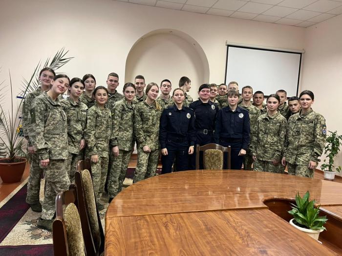 Курсантки 2 курсу ННІ №3 ХНУВС Данута Кучеренко, Валентина Кондратюк і Софія Коваль поділились особистим досвідом проходження професійного шляху від ліцеїста до курсанта, враженнями від навчання та служби у виші. Дівчата розповіли старшокласникам, чому вирішили стати поліцейськими та обрали Харківський національний університет внутрішніх справ. Ліцеїсти також дізналися про побут і дозвілля курсантської молоді, наукові гуртки і спортивні секції, що діють у ХНУВС.
