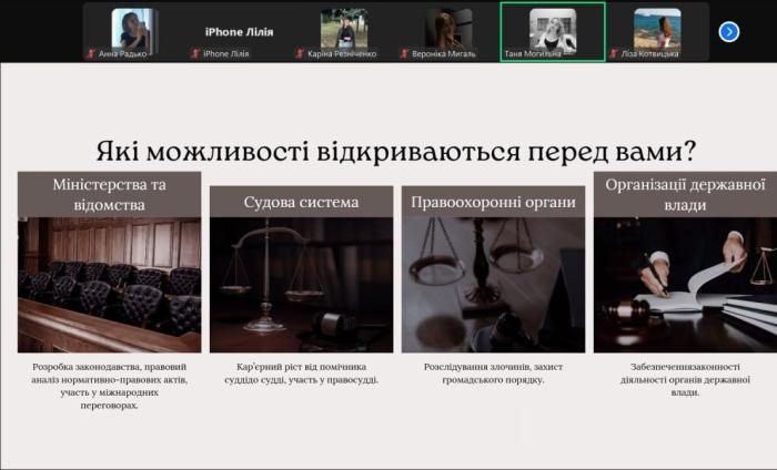 Майбутні правознавці та правоохоронці зацікавилася можливістю фахового стажування та відкритою перспективою обрати державні органи як перше робоче місце, що гарантує гідні умови для молодого юриста.