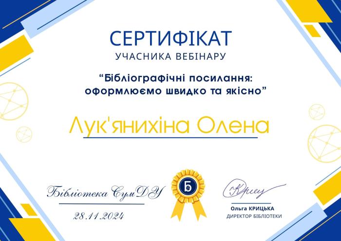 Професорка кафедри соціально-економічних дисциплін Сумської філії ХНУВС Олена Лук’янихіна та студентка, членкиня наукового гуртка кафедри Єлизавета Коваленко взяли участь у вебінарі «Бібліографічні посилання: оформлюємо швидко та якісно», організованому бібліотекою Сумського державного університету.