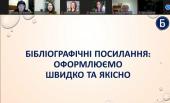 Лекторкою виступила завідувачка сектору інформаційно-аналітичної роботи та електронних ресурсів філії бібліотеки СумДУ Ольга Башлай. Вона розповіла про бібліографічні посилання та їх види, міжнародні стилі цитування, детально зупинилась на оформленні бібліографічних посилань відповідно до ДСТУ 8302:2015, продемонструвала інструменти автоматичного генерування таких посилань.