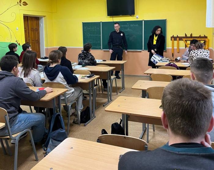 Курсант Владислав Косянчук провів бесіду із учнями 11 класу комунального закладу «Ліцей №2» селища міського типу Стрижавка Вінницького району, курсант Василь Голуб – із учнями 10-11 класів Іллінецьких ліцеїв №1 та №3 Іллінецької міської ради Вінницької області.