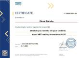 Завідувачка кафедри мовної підготовки ХНУВС Олена Статівка взяла участь у міжнародному онлайн-вебінарі «What do you need to tell your students about NMT reading preparation 2025?» від Linguist LLC. Вона ознайомилася з програмою зовнішнього незалежного оцінювання досягнень випускників навчальних закладів системи загальної середньої освіти з англійської мови у наступному році та тестовими завданнями з перевірки розуміння прочитаного. Отримана інформація стане у нагоді надалі для первинного оцінювання рівня знань майбутніх першокурсників.