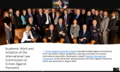 Захід відкрила засновниця та виконавча директорка Центру, докторка Яель Даніелі. Спікерами заходу виступили: професорка міжнародного кримінального права імені Джеймса Карра та директорка Інституту світового права імені Вітні Р. Гарріса при юридичному факультеті Вашингтонського університету Лейла Надя Садат; професор міжнародного права в Центрі глобальних відносин Нью-Йоркського університету Девід Донат Каттін; юридичний радник та координатор з питань санкцій Місії Бразилії в ООН, доктор Віктор Сілвейра Браойос; виконавча директорка Глобального центру правосуддя Еліза Кепплер; юридична директорка в Avaaz, The World in Motion Б’єта Андемаріам; професор міжнародного права та завідувач кафедри Річарда А. Хауслера в Школі права Університету Маямі Чарльз К. Джаллох.