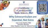 Старша викладачка кафедри мовної підготовки ХНУВС Ірина Кравець взяла участь у міжнародному онлайн-вебінарі «Why Extracurriculars are Essential, Not Extra» від Johns Hopkins Center for Talented Youth. Вона ознайомилася із дослідженнями тестування, програмами та іншими ресурсами для підтримки обдарованих студентів. Отримана інформація може бути використана для проведення позааудиторних заходів з іноземної мови з метою вдосконалення знань, соціальних навичок і лідерських якостей.