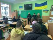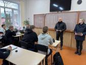 Старший викладач кафедри спеціальної фізичної підготовки ННІ №2 Ігор Островський та курсанти 4 курсу ННІ №1 Анастасія Флісник і Валерія Шурда провели профорієнтаційну зустріч з учнями 10-11 класів і заступницею директора з навчальної роботи Ольгою Крижанівською. Вони розповіли старшокласникам про особливості вступу до університету, ознайомили зі спеціальностями, за якими готують фахівців для підрозділів Національної поліції. Курсанти поділилися власним досвідом служби та навчання, розповіли про перспективи подальшого працевлаштування випускників університету після його закінчення. Ігор Островський звернув увагу ліцеїстів на численні спортивні секції, що діють в університеті, – із самбо і дзюдо, боксу, гирьового спорту, легкої атлетики, ігрових видів спорту тощо, які допомагають формувати силу, характер, вольові якості майбутніх працівників поліції.
