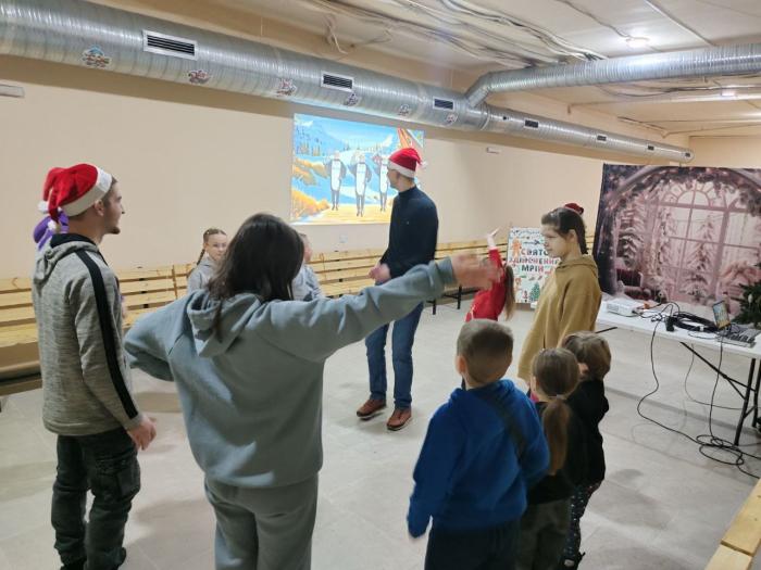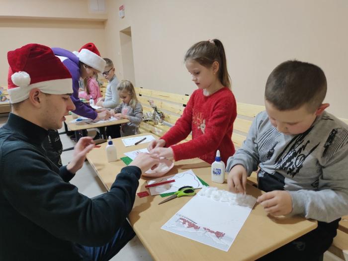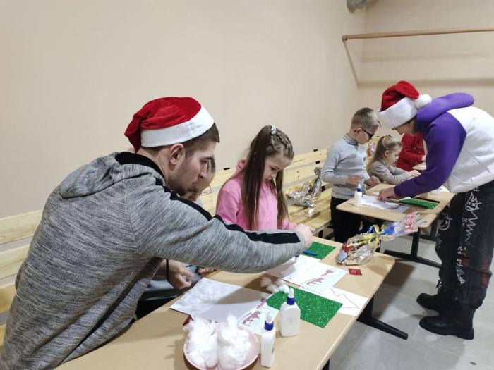 У межах проєкту МВС України #Дружняпідтримка студентське самоврядування першого та другого курсів привітали дітей ВПО, які займаються у гуртках Центру культури та дозвілля Сумської міської ради. Хлопці та дівчата підготували цікаву святкову програму, яка включала конкурси та веселі розваги. Разом із гуртківцями вони провели майстер-клас із виготовлення новорічних прикрас і подарували дітям солодощі.