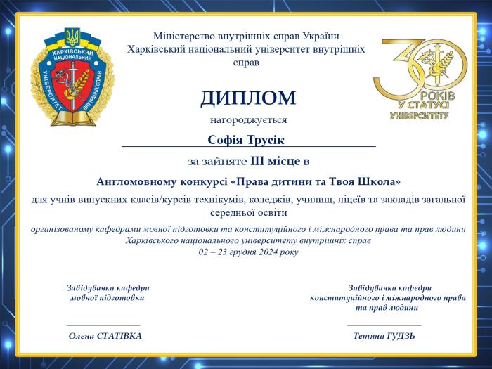 ІІІ місце – Софія Трусік, Нетішинський академічний ліцей.
