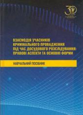 У навчальному посібнику «Взаємодія учасників кримінального провадження під час досудового розслідування. Правові аспекти та основні форми» висвітлено актуальні питання організації взаємодії учасників кримінального провадження під час досудового розслідування, зокрема слідчого з оперативними підрозділами, експертом, спеціалістом, прокурором. Розглянуто теоретичні підходи до поняття «взаємодія», надано класифікацію видів і форм взаємодії, розкрито проблемні теоретичні та прикладні питання взаємодії під час застосування заходів забезпечення кримінального провадження. Розраховано на курсантів, слухачів, студентів, ад’юнктів, аспірантів, викладачів, науковців закладів вищої освіти, працівників органів досудового розслідування та інших підрозділів Національної поліції України, прокуратури.