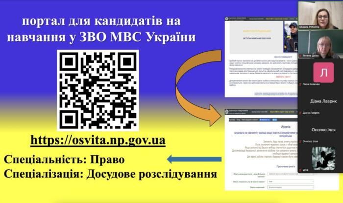 За такою темою відбулась профорієнтаційна онлайн-зустріч професорки кафедри кримінального процесу та організації досудового слідства ННІ №1 Оксани Пчеліної та професора кафедри адміністративної діяльності ННІ №3 Віталія Пчеліна з учнями випускних класів Харківського ліцею №90. Вони ознайомили майбутніх абітурієнтів із перевагами вступу до Харківського національного університету внутрішніх справ, структурою закладу вищої освіти та спеціальностями, за якими здійснюється підготовка фахівців для підрозділів Національної поліції. Особливу увагу вони приділили порядку та умовам вступу до університету.