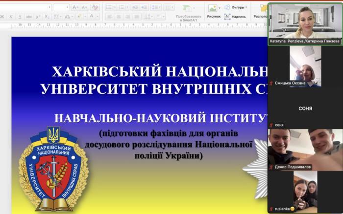 Старша викладачка кафедри криміналістики та судової експертології ННІ №1 ХНУВС Катерина Пензєва під час онлайн-зустрічі розповіла старшокласникам Кам’янець-Подільського ліцею №15, що навчально-науковий інститут №1 готує слідчих і дізнавачів, які працюють в усіх правоохоронних органах країни. Їх діяльність спрямована на захист національної безпеки, законності, правопорядку, прав і свобод громадян. Молодь також дізналася про інші спеціальності, за якими навчаються курсанти та студенти, про особливості освітнього процесу, умови побуту, дозвілля здобувачів освіти ХНУВС.