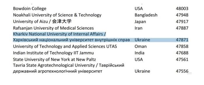 До рейтингу занесено лише університети, що мають понад 1000 цитувань. Серед 107 українських університетів до рейтингу увійшло шість ЗВО МВС України.