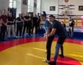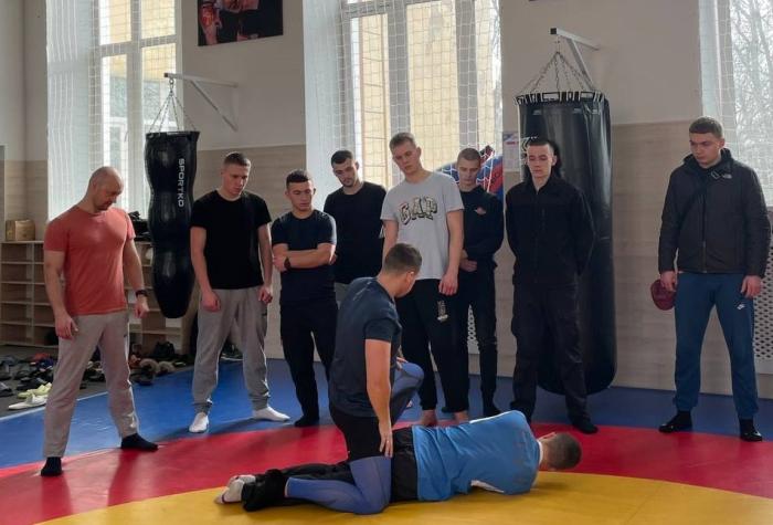 Практичне заняття провели інспектор взводу №2 роти тактико-оперативного реагування Управління патрульної поліції у Хмельницькій області ДПП Дмитро Орищук разом із працівниками кафедри спеціальної фізичної підготовки ННІ №2 – старшими викладачами Михайлом Іншековим та Ігорем Островським.