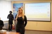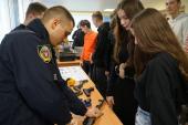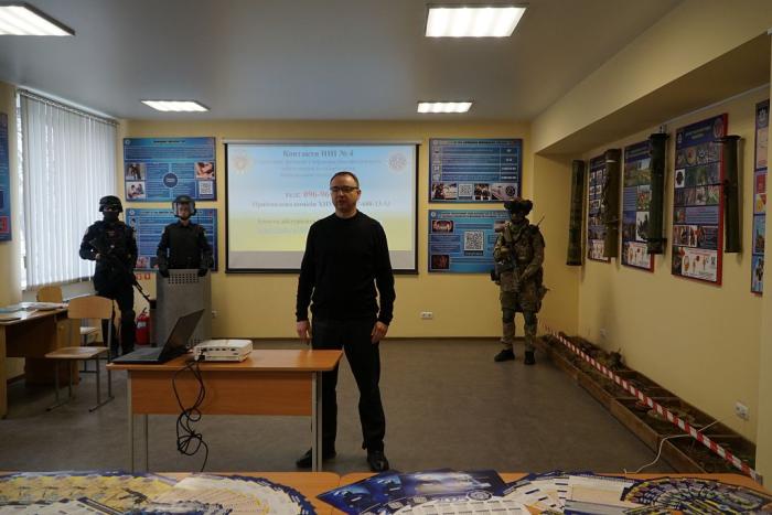 Доцент кафедри з вогневої підготовки Максим Владимиров і старший викладач кафедри тактико-спеціальної підготовки Володимир Євтушок разом із курсантами продемонстрували макети різних видів зброї, вибухонебезпечних предметів і боєприпасів, а також екіпірування поліцейського під час виконання спеціальних завдань.