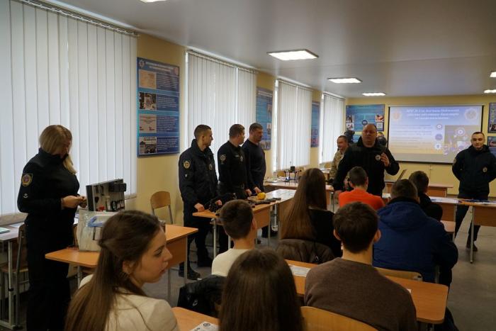 Від фахівчині відділення психологічного забезпечення відділу кадрового забезпечення Єлизавети Посної старшокласники дізналися про особливості надання психологічної допомоги дітям, які постраждали від домашнього насильства, булінгу або стали жертвами кримінальних правопорушень.