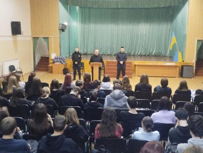 Про професію слідчого і дізнавача старшокласникам розповів заступник начальника курсу ННІ №1 Руслан ЄДІН, курсант ННІ №4 Владислав КОЧИН поділився особистим досвідом навчання у ХНУВС.