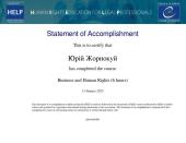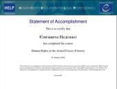 За такою темою завідувач кафедри цивільного права та процесу ННІ №5, професор Юрій ЖОРНОКУЙ та старша викладачка кафедри Софія ПОПОВА разом зі студентами пройшли курс підвищення кваліфікації на онлайн-платформі HELP, зокрема англійською мовою (Human Rights in the Armed Forces, Business and Human Right).